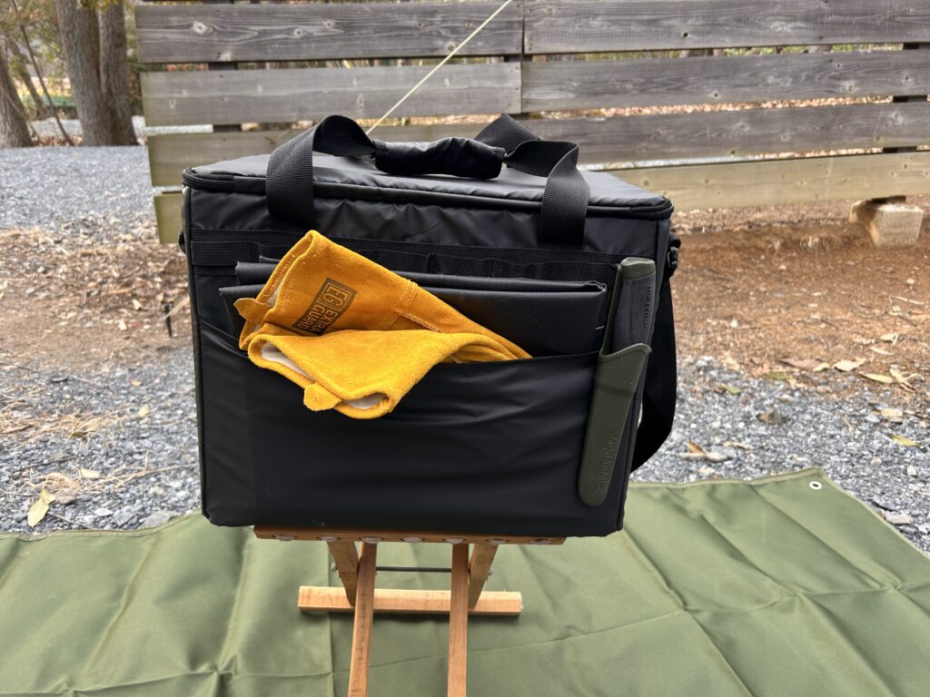 汚れそうな焚火グッズを外回りのポケットへ