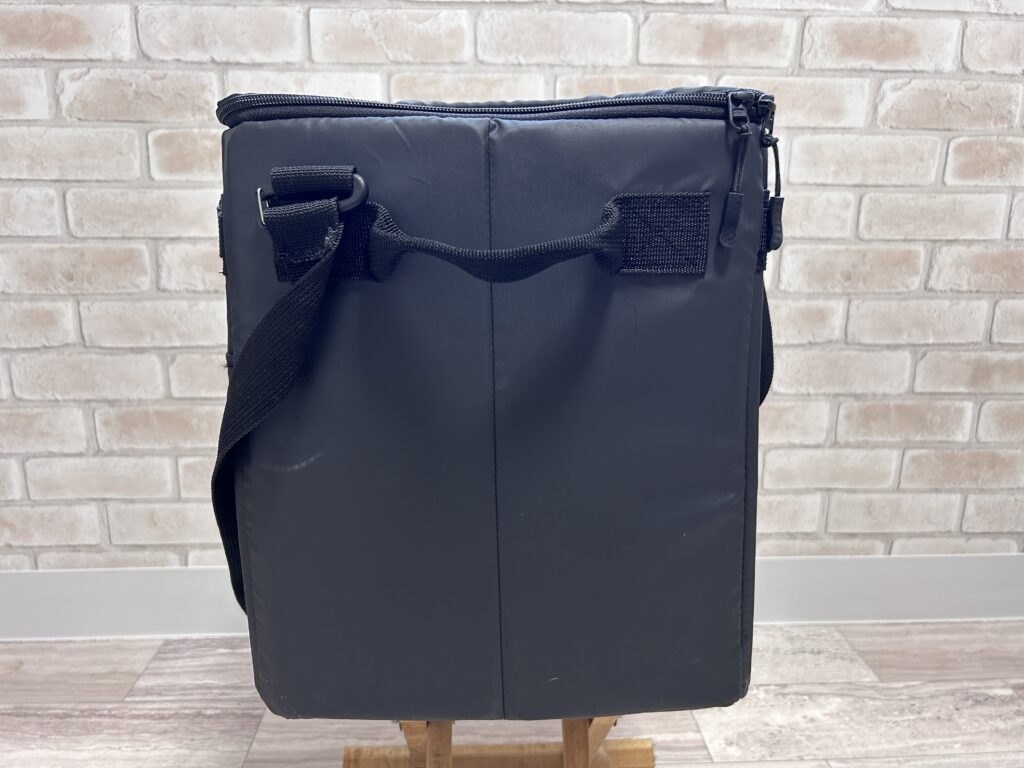 上部は物が置けるくらい頑丈な作りでショルダーストラップもついてます。